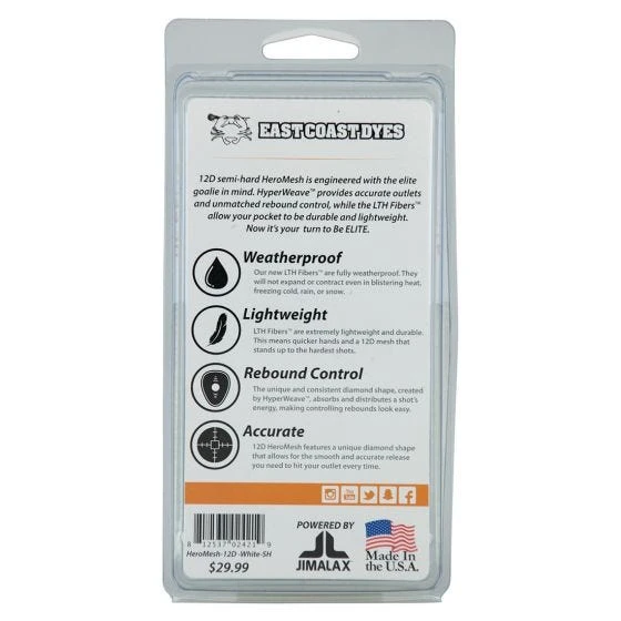 ECD Lacrosse East Coast Dyes – HeroMesh 12D Goalie Semi Hard – White